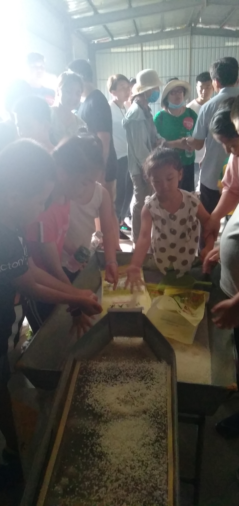 孩子们自己装米,玩的不亦乐乎 来体验一下,看宋庄大米脱壳演示#益农社#