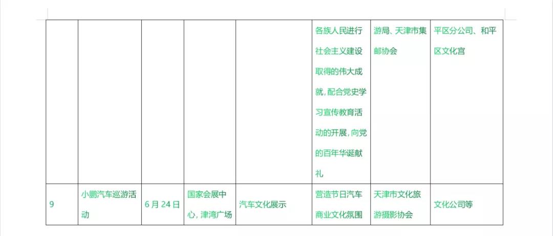 6月24日国家会展中心将正式开放,区文旅局与“奏耐天津”大V联合推出小鹏汽车巡游活动,6月24日在津湾广场举办启动仪式。